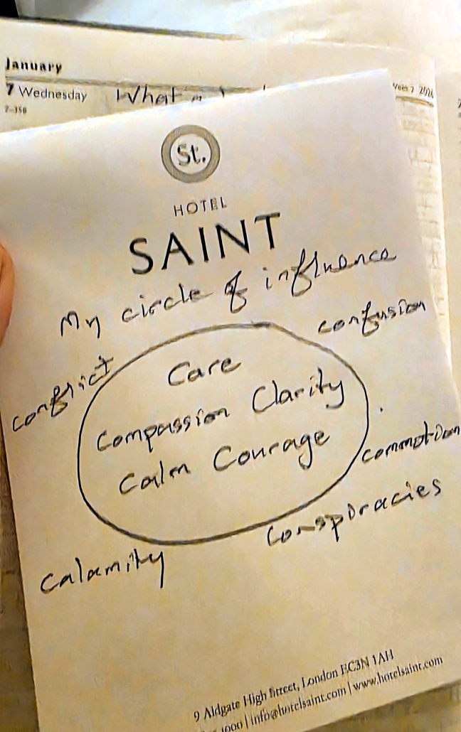 Within my own circle of influence, I can choose care in how I treat others. I can practice compassion when fear shows up in a conversation. I can seek clarity in what I choose to watch and share. I can also cultivate calm rather than constant reaction. But above all I can act with courage by living my values quietly and consistently.